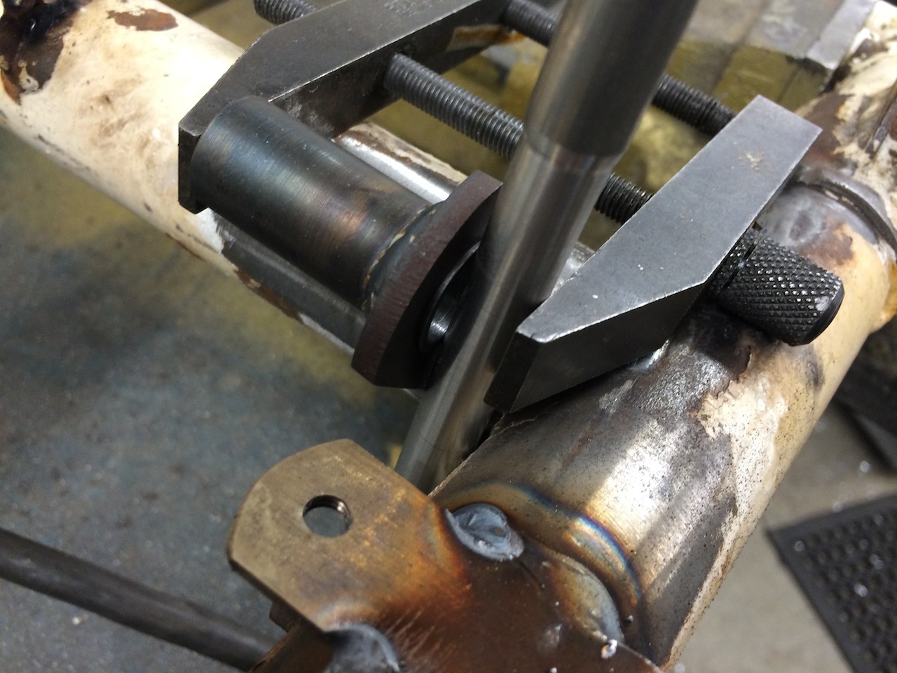 Use an 11mm rod to set the distance of the bracket from the arm. Also, Rotate the bracket upwards so that when installed, the bolt will pass through from the outside...